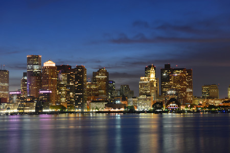 Boston night skyline - evening Waterfront view of the city.