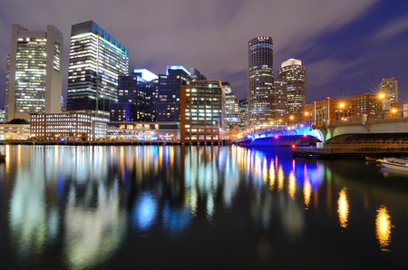 Nightview of the waterfront of Boston, Massachusetts