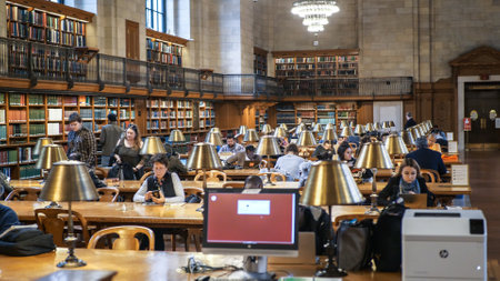 NEW YORK-APRIL 14 Students study at the New York City Public Library on April 14 2014 in Manhattan The New York City Public Library is the second largest library in the United States