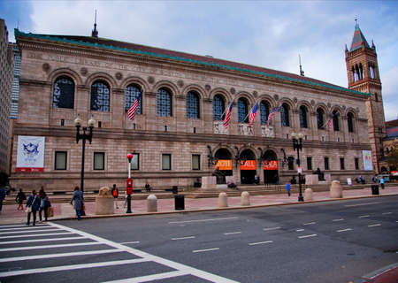 Boston, Massachusetts - October 3rd, 2019: Exterior of Boston Public Library at Copley Square in the Back Bay neighborhood of Boston