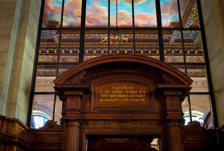 NEW YORK-APRIL 14 A good book quote inside the New York City Public Library on April 14 2014 in Manhattan The library incorporates the classic Beaux-Arts style of architecture