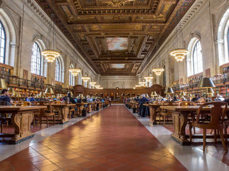 NEW YORK CITY, USA - MARCH 15, 2020: Main reading room of the New York Public Library, New York City, USA