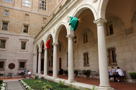 Boston, USA - October 22, 2021: Reading room at McKim Building where you can study, do research or read, located in the Boston Public Library