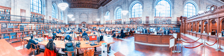 NEW YORK CITY - NOVEMBER 30TH, 2018: Panoramic view of Public Library interior. This is a major tourist attraction.
