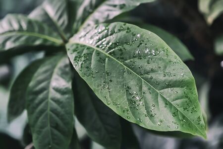 Green leaves background.Green leaves color tone dark in the morning.Tropical Plant in Thailand,environment,good air,fresh.photo concept nature and plant.