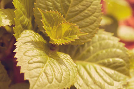 Close-Up of Vibrant Green Leaves with Red Veins Botanical Texture
