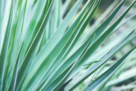 Abstract tropical floral pattern as background. Close-up of palm leaves in mint colors.