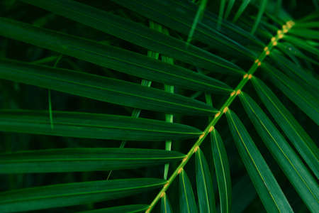 Plam leaves natural green pattern on dark background / Leaf beautiful in the tropical forest plant jungle