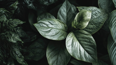 Explore the serene beauty of lush green leaves captured in natural light, showcasing the intricate textures and patterns of this vibrant indoor plant life.