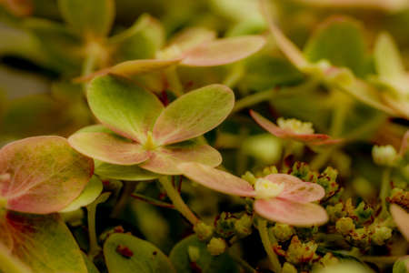 Top view of Sedum ewersii green gardenplant. Green leaves pattern background.
