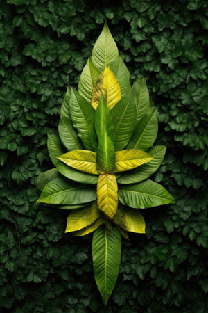 This image features a variety of green leaves and ferns artistically arranged on a plain background, highlighting natural beauty and organic designs.
