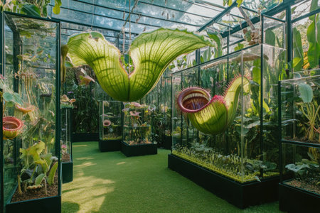 exotic flowers blooming in tropical greenhouse, created with generative ai