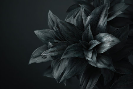 Beautiful abstract color gray and black flowers on dark background, dark leaves texture, dark background, colorful graphics banner, white leaves, black leaves texture