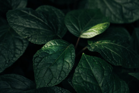 Dark blue leaves background. Nature and botany concept. Leaf texture