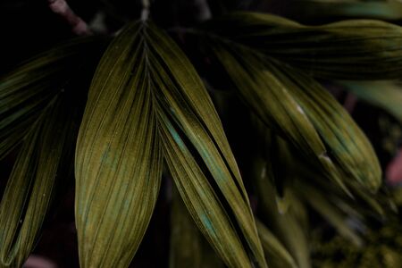 Dark green tropical leaves background – Toned nature shot of some forest greenery – Dramatic foliage decoration
