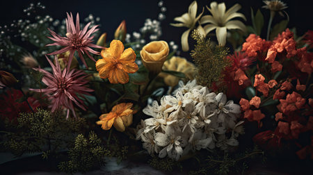 Bright, colorful flowers in a stunning arrangement create a joyful and vibrant scene.
