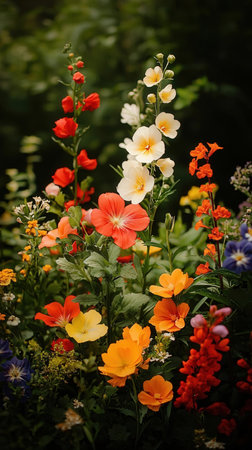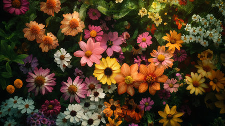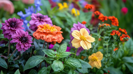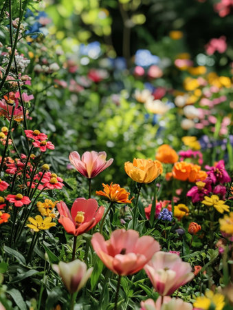 A vibrant display of colorful flowers in a lush garden setting. The image captures the beauty and diversity of nature in full bloom. Perfect for nature lovers.