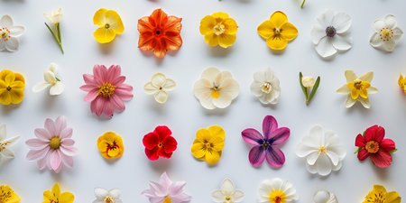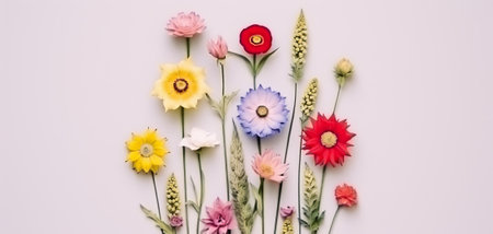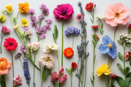 A vibrant array of colorful wildflowers arranged beautifully on a bright white surface for all to admire