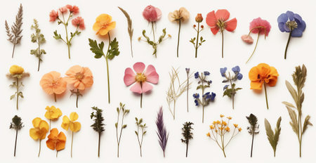Generative AI Pressed flowers isolated on white background