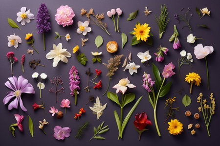 Generative AI : collage from different kind of spring flowers