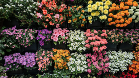 A vibrant wall of colorful flowers in full bloom.
