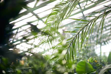 Palm leaf foliage Plant in glasshouse Nature art background