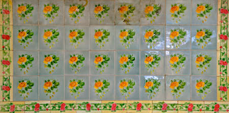 Typical Portuguese decorations with yellow ceramic tiles (Portugal - Europe)