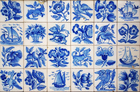 Old vintage ceramic tiles for decoration stoves and fireplaces. Background, texture