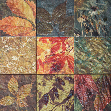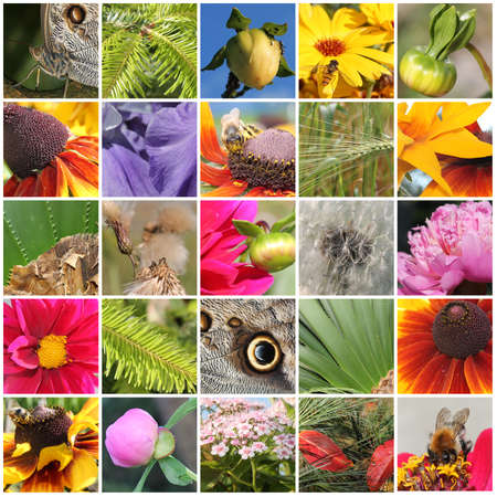 A beautiful collage showing the warm tones of autumn. Dried leaves, flowers, and seeds are arranged in a visually appealing composition.