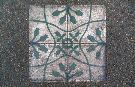 White vintage tiles with a beautiful pattern on the sidewalk. Thailand