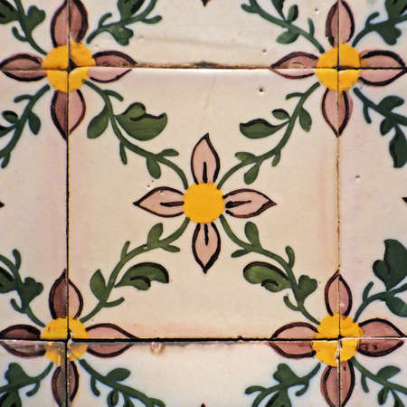 Typical old Lisbon tiles, detail of a classic ceramic tiles, art of Portugal