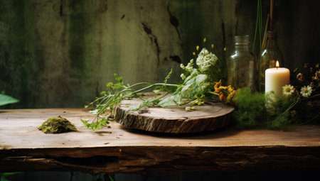 Modern flat lay style showcasing herbal medicine and cosmetic background