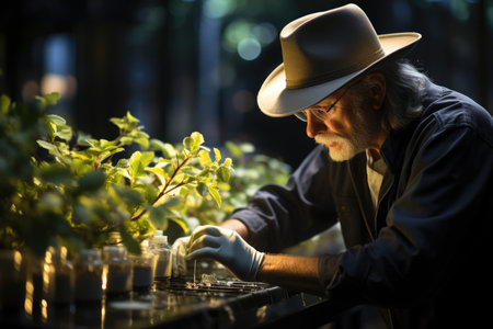 a scientist is working on a plants at the greenhouse