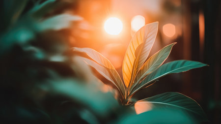 A captivating scene showcasing delicate greenery bathed in ethereal sunlight, creating a serene and tranquil atmosphere perfect for natural-themed projects.