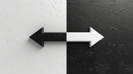 Two arrows in contrasting black and white point in opposite directions, symbolizing choice and direction. This minimalist design emphasizes clarity and communication.