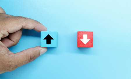 colored wooden cubes with down and up arrow icons