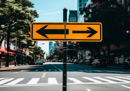 Arrow signal on street at city