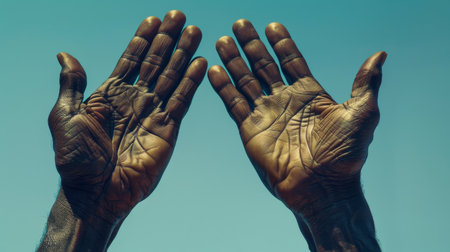 Two open hands against a clear blue sky ai generated