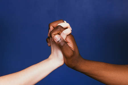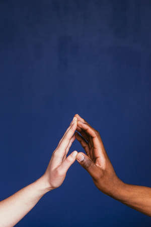 Diverse culture concept. Black man and white woman hands