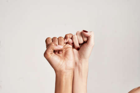 Photo of natural multiracial women hands, body positive. Feminist females support, isolated on white background. Concept natural beauty and girl power