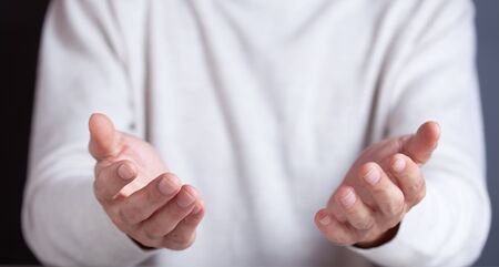 man empty hands on the dark background