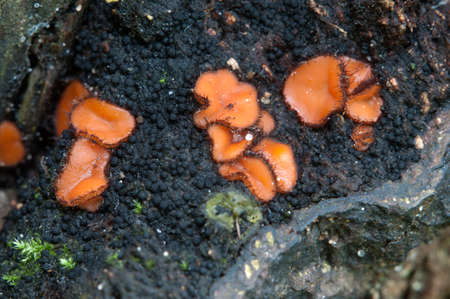 Scutellinia sp. fungus, close up shot, local focus
