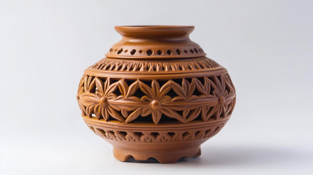 This intricate terracotta pot showcases stunning craftsmanship with its floral designs and smooth texture, perfect for enhancing any decor style.