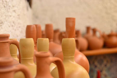 Traditional Georgian clay pottery for sale in the village of Shrosha, Georgia