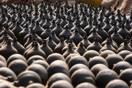 Handmade clay piggy bank on natural background in pottery square bhaktapur nepal.