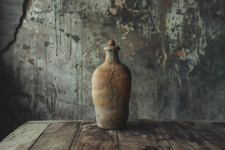 A striking cinematic wide shot capturing a traditional Kuzah (clay water jug) resting on a sun-drenc