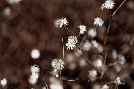 Dry flowers pattern isolated on white background. Flat lay, top view.
