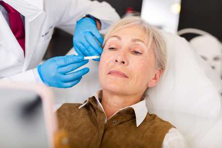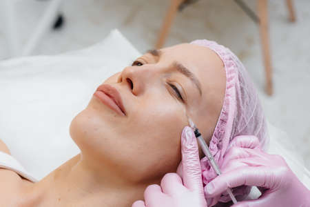 woman face injection. salon cosmetology procedure. skin medical care. dermatology treatment. anti aging wrinkle lifting.