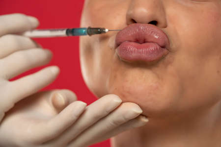 Cosmetology procedure for lip augmentation and wrinkle removal for a young beautiful girl. Cosmetology