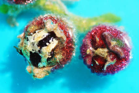 Dangerous mold and bacteria. The concept of dampness, moisture, dust, and respiratory problems. Microscope fungi on food